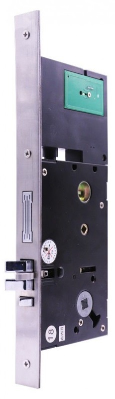Электронные компоненты, батареи, антенна установлены в корпусе врезного механизма. Простое изменения режима замка с гостиничного на офисный делает удобным применение замка в служебных помещениях