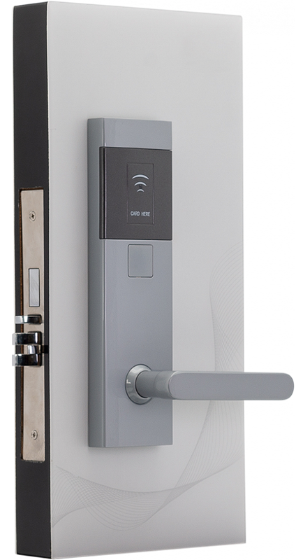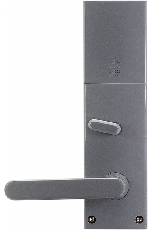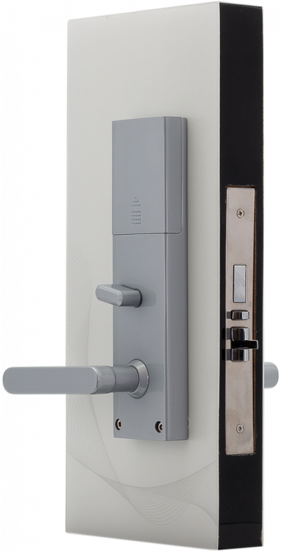 Электронные компоненты, батареи, антенна установлены в корпусе врезного механизма. Простое изменения режима замка с гостиничного на офисный делает удобным применение замка в служебных помещениях