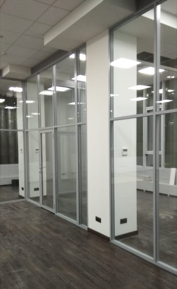 Купить "СТЕКЛЯННАЯ ПЕРЕГОРОДКА НА АЛЮМИНИЕВОМ ПРОФИЛЕ, ДВОЙНОЙ ВИТРАЖ" в Краснодаре